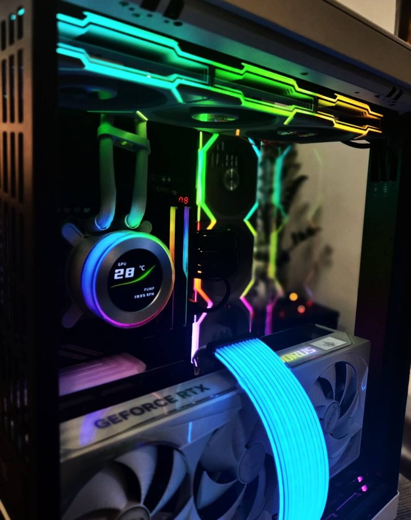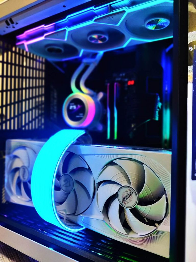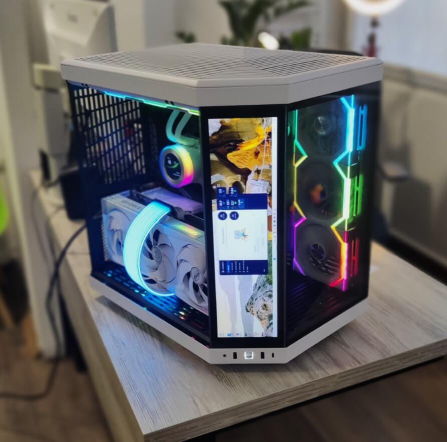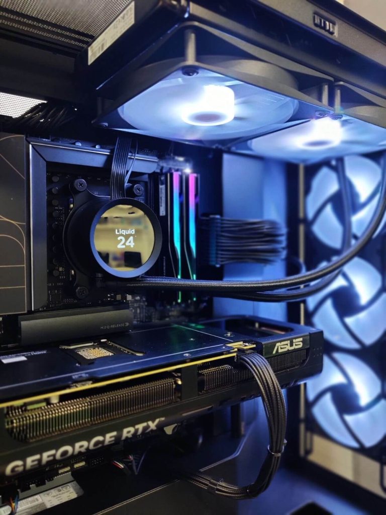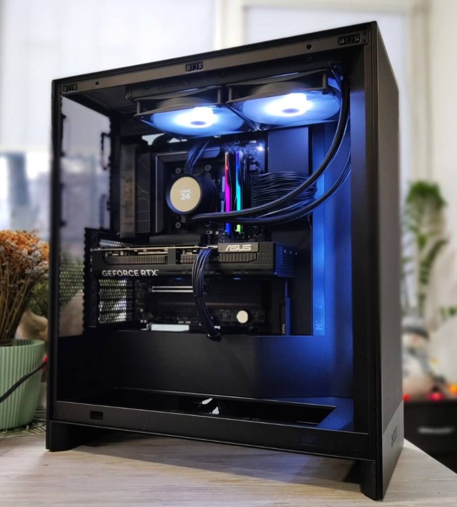 Сè е сместено во NZXT H7 Flow RGB (2024) – куќиште познато по одличен airflow, минималистички дизајн и премиум изработка. Дополнителниот Arctic P12 вентилатор обезбедува уште подобра циркулација на воздух, што значи пониски температури и потивка работа.