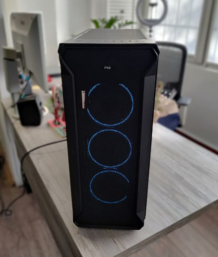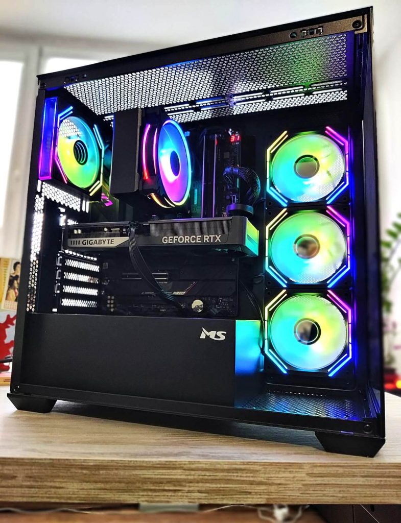 Сите компоненти се сместени во MS ARMOR V745 Gaming куќиште, кое нуди добар airflow, модерен gaming дизајн и простор за уредна организација на компонентите. Со оптимизиран проток на воздух, куќиштето помага во одржување на стабилни температури и долгорочна сигурност на системот.