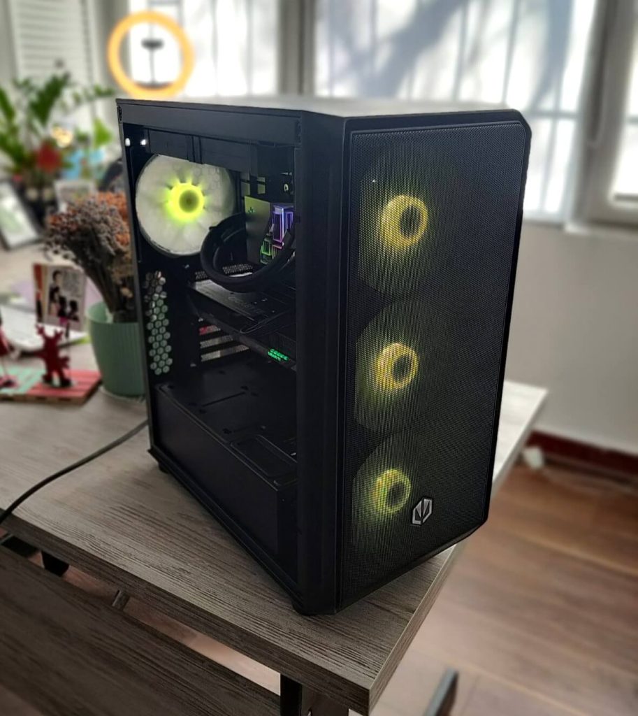 Сите компоненти се сместени во Endorfy Arx 500 ARGB куќиште, кое комбинира модерен дизајн, RGB осветлување и оптимизиран проток на воздух. Пространиот ентериер и добриот airflow овозможуваат правилно ладење на компонентите и уредна организација на каблите, што придонесува за стабилност и визуелна естетика на системот.