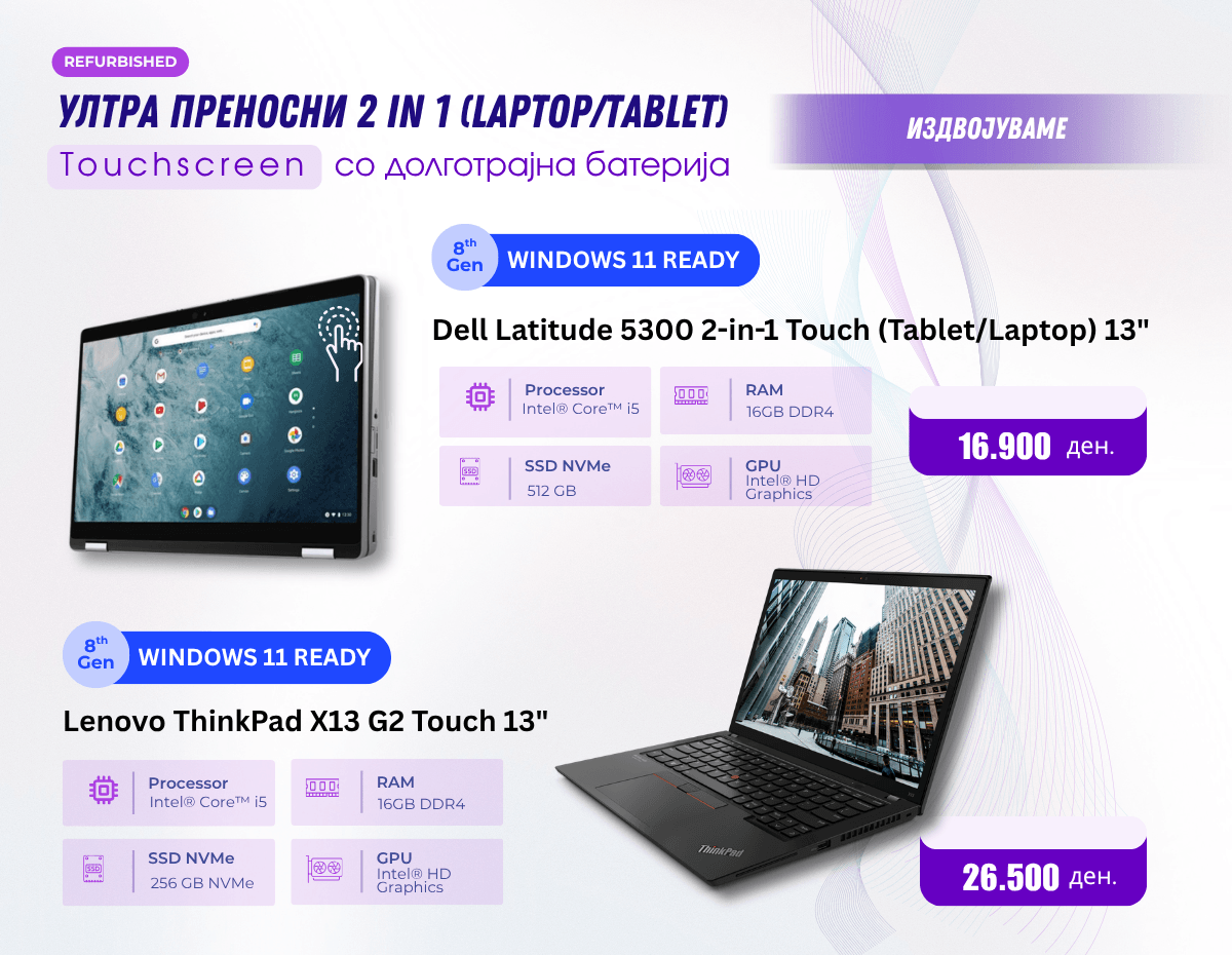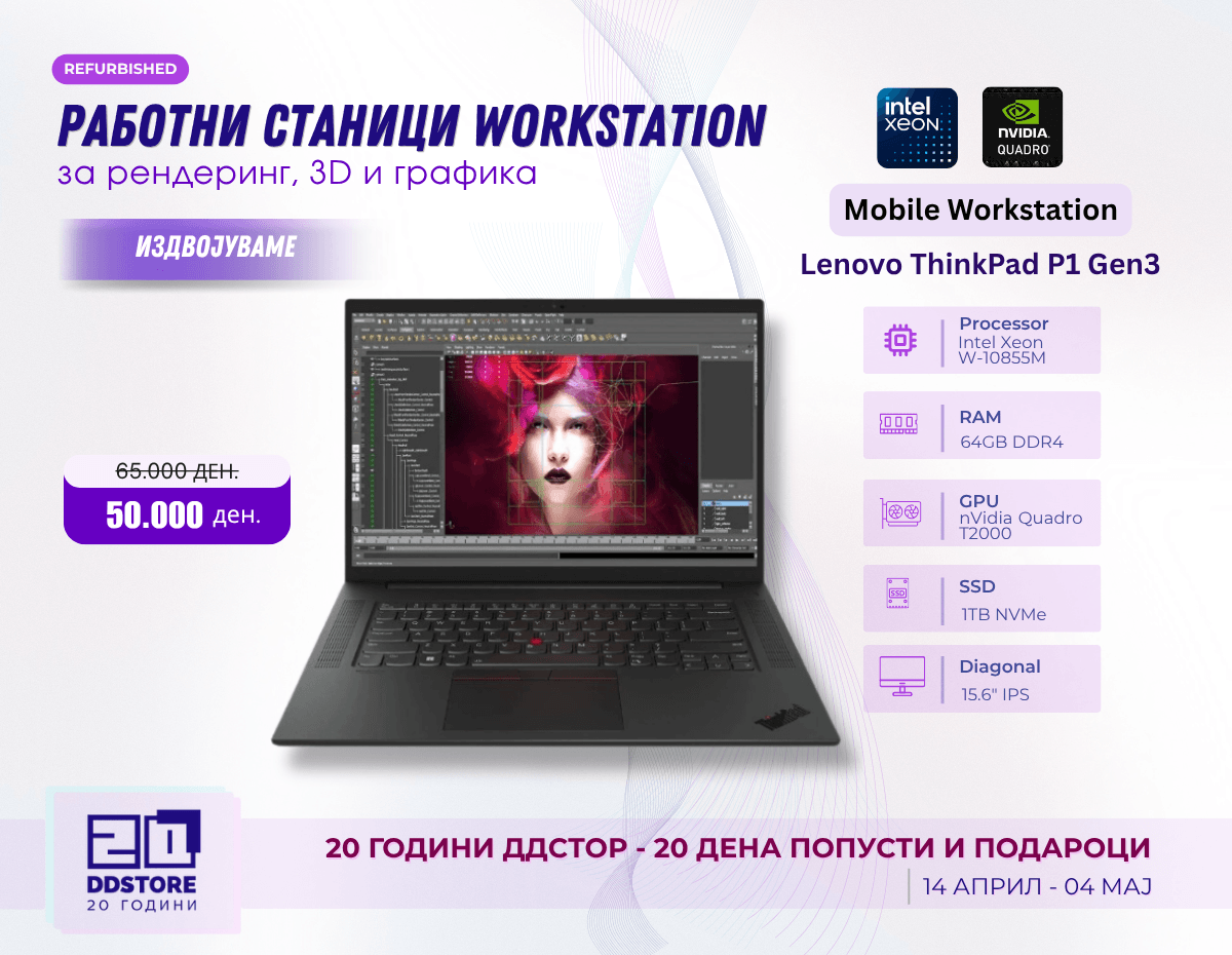 Контактирај нѐ преку DDStore.mk https://ddstore.mk/contact и побарај детална понуда. Нашиот тим ќе ти помогне да ја адаптираш конфигурацијата кон твоите специфични потреби.